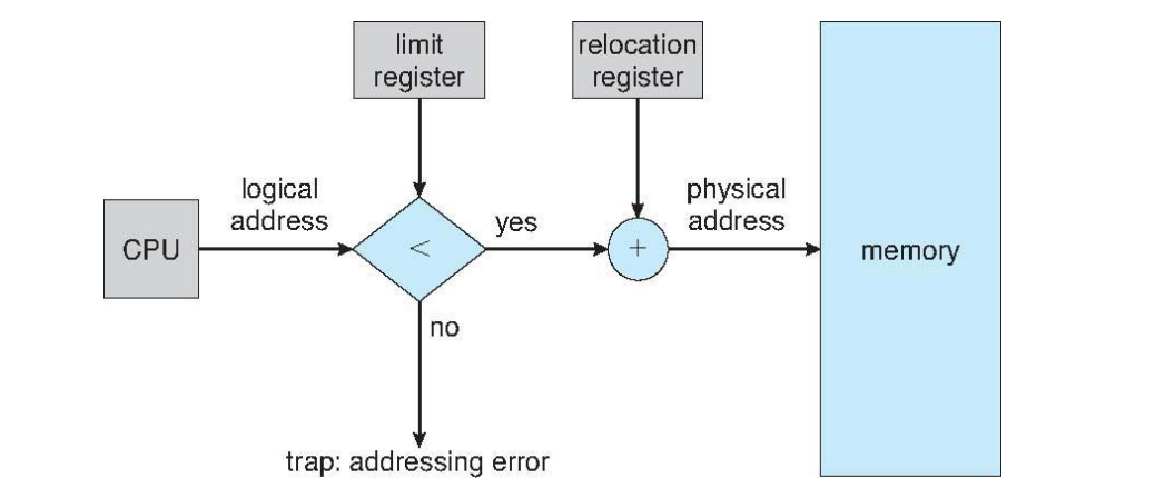 - 运行时,当进程在执行过程中可能被移动到不同内存段时,地址绑定延迟到运行时完成,此时需要硬件支持(如基址和限长寄存器)来动态实现地址转换,从而实现灵活的内存管理与保护。
