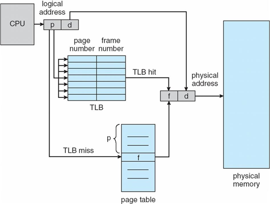 页表通常存储在主存中,由页表基址寄存器(PTBR,如x86架构中的cr3寄存器)指向其起始地址,页表长度寄存器(PRLR)则指示页表的大小。在每次访问数据或指令时,系统需进行两次内存访问:一次用于查页表获取物理帧号,另一次用于访问实际数据,这会降低性能。为解决这一问题,现代系统引入了快表(Translation Lookaside Buffer, TLB),即一种高速缓存硬件,也称为联想寄存器,用于缓存最近使用的页表项,从而避免频繁访问主存中的页表。