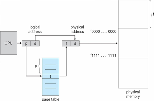 在分页系统中,CPU生成的逻辑地址被划分为两部分:页号(page number, p) 和 页内偏移(page offset, d)。其中,页号作为索引用于访问页表,查找到对应页在物理内存中的起始地址(即帧号);页内偏移则与该物理地址结合,形成最终的物理地址并发送给内存单元进行访问。