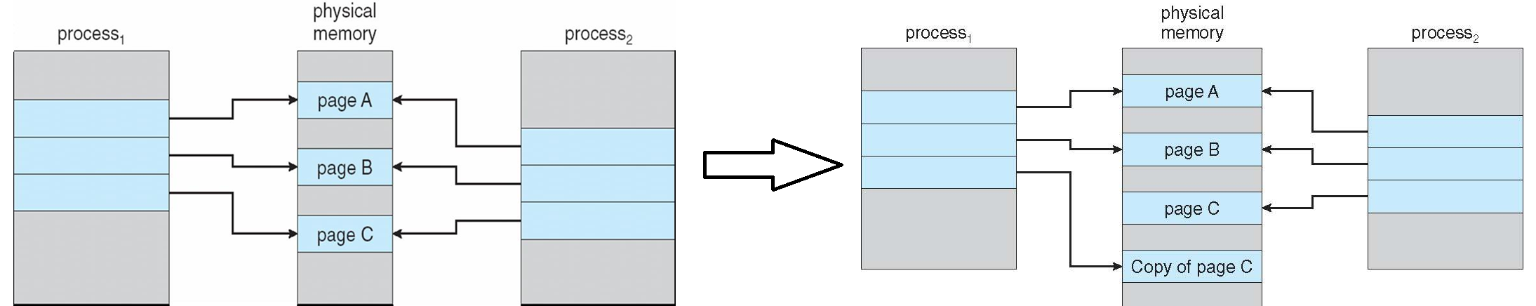 当某一个进程要修改共享的内存页的时候,这个时候才进行页的复制。下图就是当进程1修改 page C 时发生的变化。