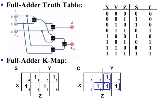 三输入加法函数(\(X+Y+Z=C:S\)),带有低位的进位