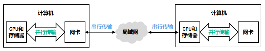 计算机内部追求速度,采用并行传输;而网络传输追求成本和距离,采用串行传输。
