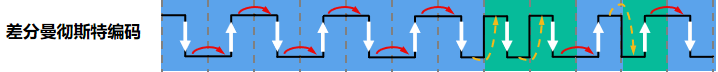 在传输介质接线错误导致高低电平翻转的情况下,差分曼彻斯特编码仍然有效。