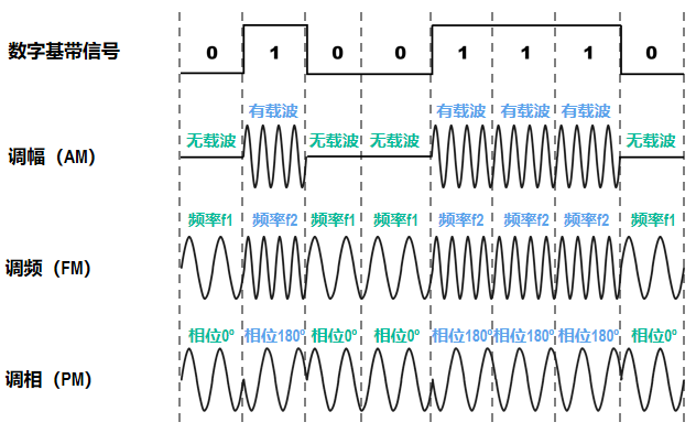 基本的带通调制方法有调幅、调频、调相