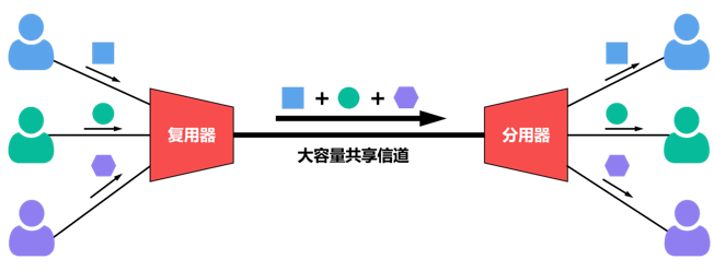 复用(Multiplexing)就是在一条传输媒体上同时传输多路用户的信号。