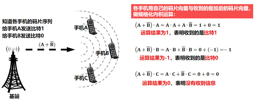 - 分配给每个站的码片序列必须相互正交,即各码片序列相应的码片向量之间的规格化内积为0。