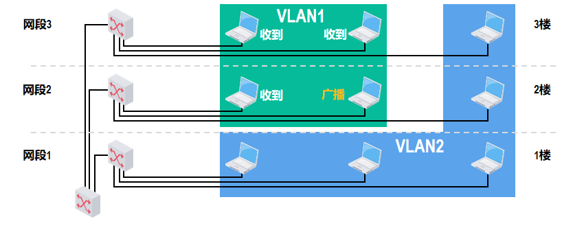 网络管理员可对局域网中的各交换机进行配置来建立多个逻辑上独立的VLAN。连接在同一交换机上的多个站点可以属于不同的VLAN,而属于同一VLAN的多个站点可以连接在不同的交换机上。