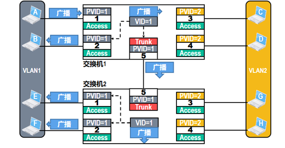 属于同一VLAN的站点之间可以直接进行通信,而不同VLAN中的站点之间不能直接通信。