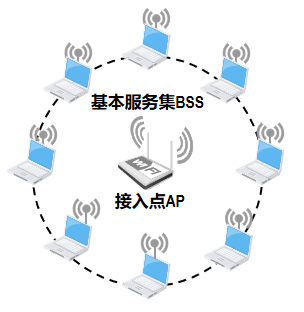本BSS内各站点之间的通信以及与本BSS外的站点之间的通信,都必须经过本BSS内的AP进行转发。
