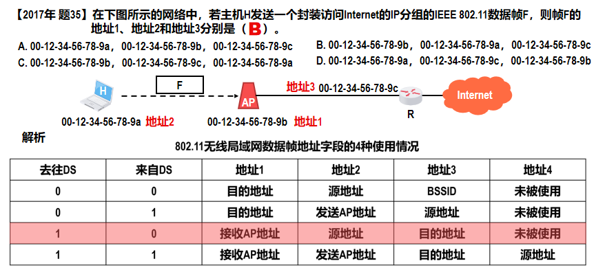 地址1234的含义取决于帧控制字段中的“去往DS”(到分配系统)和“来自DS”(分配系统)这两个字段的值。