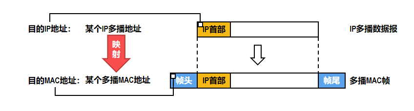 主机 A 向本地网络中的多播路由器发送一个 IGMP 成员报告报文(IGMP Membership Report)。该报文内容包含它希望加入的多播组地址(226.0.9.26),并封装在 IP 多播数据报中,目的 IP 地址为该多播组地址;再进一步封装在以太网帧中,目的 MAC 地址为对应的多播 MAC 地址。