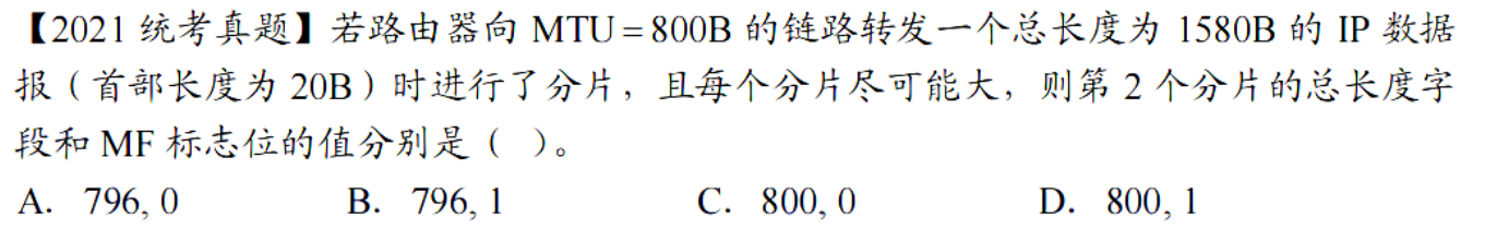 B 注意 MTU 的定义,这个是包括首部的最大载荷。