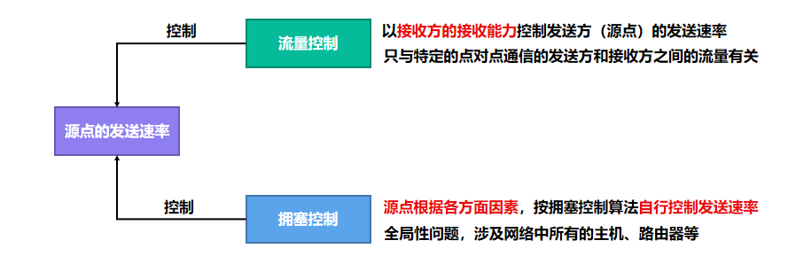 拥塞控制则是为了防止过多的数据注入到网络中,使网络能够承受现有的网络负荷,避免网络出现拥塞甚至崩溃,主要关注的是整个网络的负载情况。