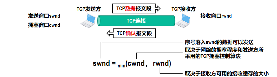 不考虑拥塞控制的话,swnd = rwnd; 不考虑流量控制的话,swnd = cwnd