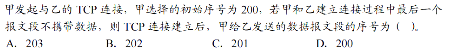 建立连接的第一个报文段不携带数据,但是消耗一个序号,第三次握手可以携带数据也可以不携带数据(这样就不消耗序号),根据题意,选 C