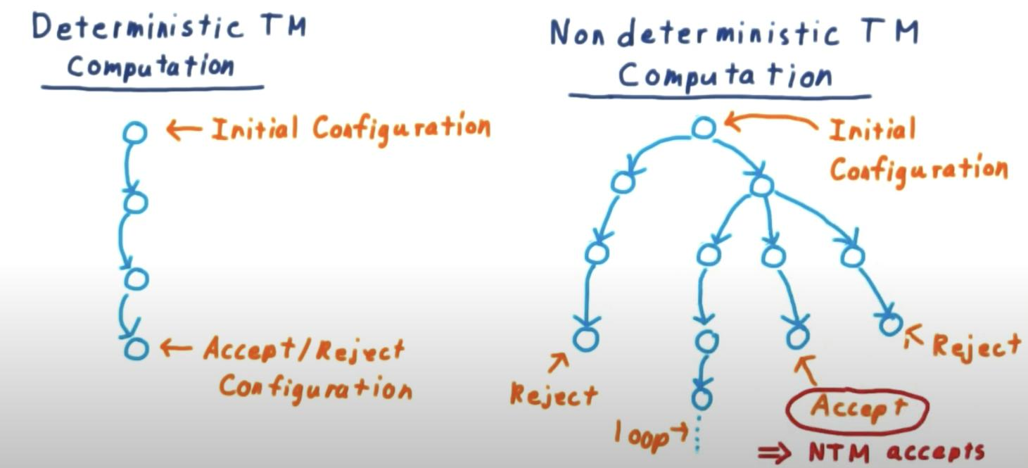 - 如果 \(w\in L\) 则NTM有分支可以停机,否则没有分支可以停机