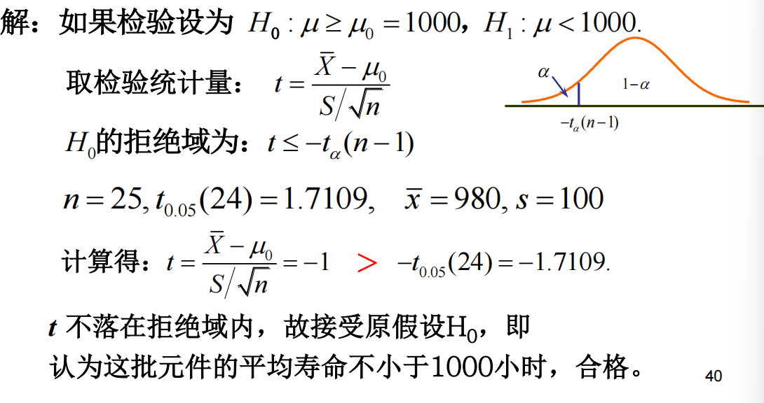 由于\(σ^2\)未知,故不能用 \(\frac{\bar{X} - \mu_0}{\sigma / \sqrt{n}}\) 来确定拒绝域了。