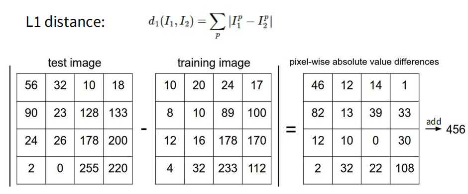 那么如何定义两张图片的距离呢?可以简单地将各个像素的值的绝对值差相加来定义距离