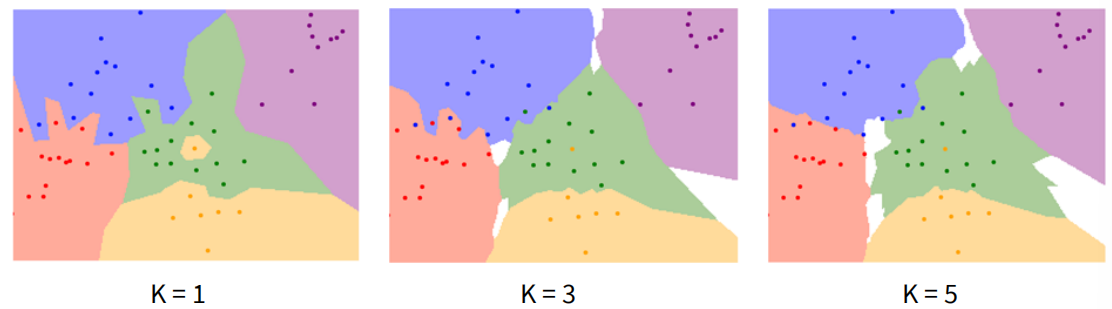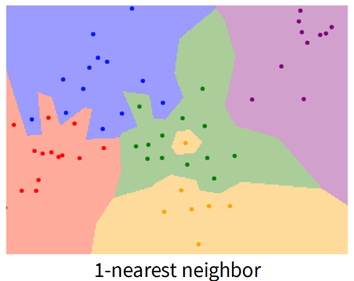 于是我们对其进行改进,采取 K-Nearest Neighbors 的方法,即 Instead of copying label from nearest neighbor, take majority vote from K closest points