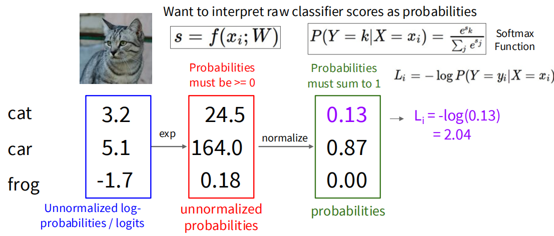 使用得分向量的简写形式:\(s = f(x_i, W)\)