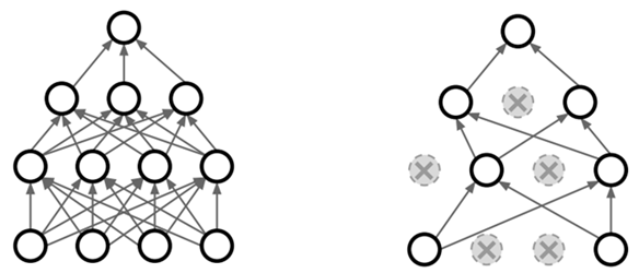 当验证集的准确率比训练集的准确率要低很多的时候,说明我们对训练集过拟合了,利用之前的知识我们可以知道通过正则化的方式来解决(缓解?)这个问题。之前讲的正则化方式是增加一个正则化项以加入参数复杂化的代价,接下来我们将介绍其他的几种正则化的方式