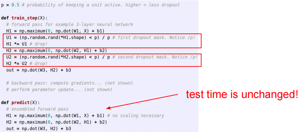p = 0.5 # probability of keeping a unit active. higher = less dropout