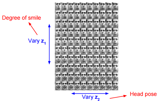 那么我们的生成方式就是利用解码器对高斯分布随机选取的 z 进行解码得到新的图像