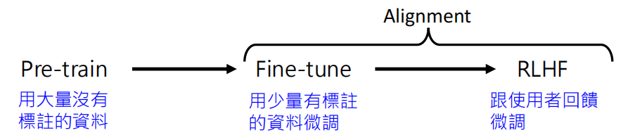 Fine-tune (微调):利用少量有标注的资料。让模型学会“回答问题”的形式,而不只是续写文字。