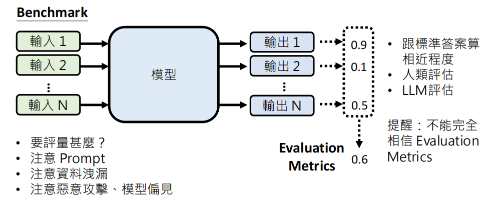 但是我们也不要过于相信 Evaluation 的分数,如果完全相信 Evaluation 得到的分数 → 你可能會得到一個在 Evaluation 取得高分,但实际上表现不佳的模型