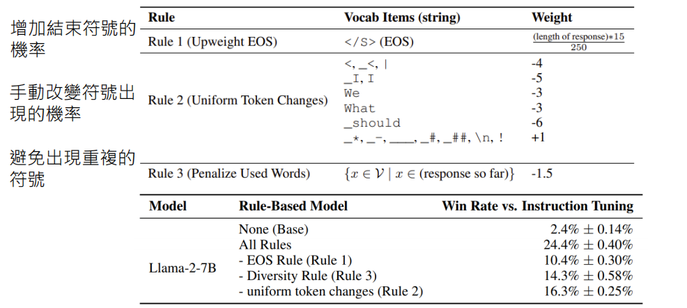甚至发现有些模型在不经过传统 SFT 的情况下,仅通过调整结束符号概率也能展现指令遵循能力。