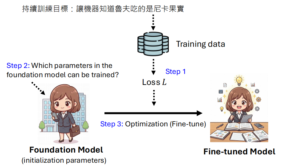通用模型在经过前期完成 Pre-train,SFT,RLHF 之后,它的学习并没有结束,而是新的开始。比如说 AI 需要持续学习新知识,掌握新的技能,理解新的概念,还有遗忘一些有害的信息以及隐私信息。也就是说通用模型仍然需要更新参数以拥有这些能力。这一节的内容讲述如何通过各种技术手段让AI持续获取新知识、新技能,或者遗忘某些信息。
