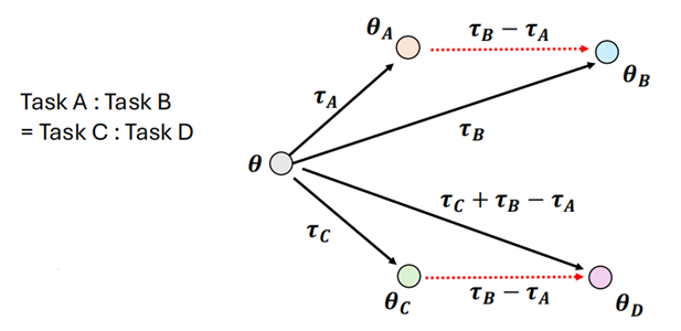 - 类比:Task B 相比于 Task A 的能力和 Task D 相比于 Task C 的能力是类似的,那么我们在针对 Task ABC 训练之后,可以在没有 Task D 的资料的情况下,让模型学会 Task D