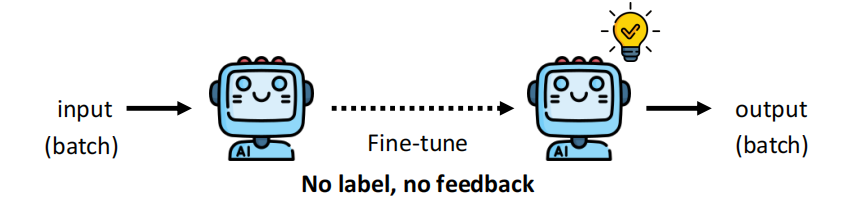 思路是在测试的时候对模型进行微调,这里不需要 lable,也不需要 feedback。